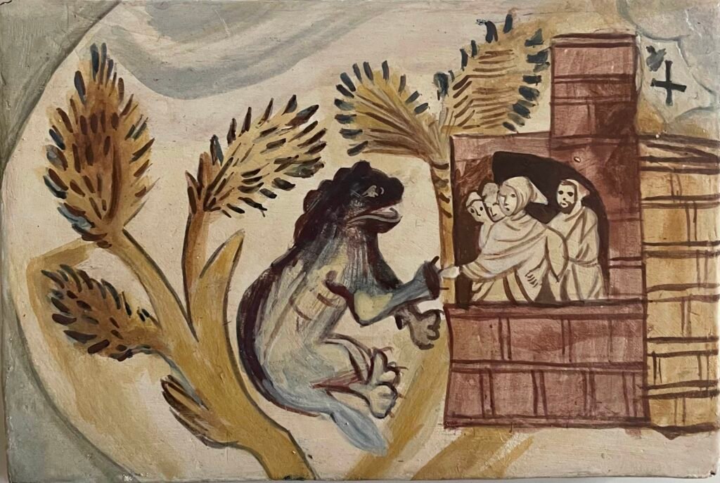 Monaci e leone - San Bevignate 10x15